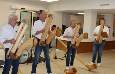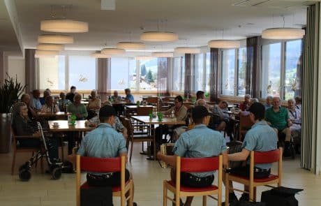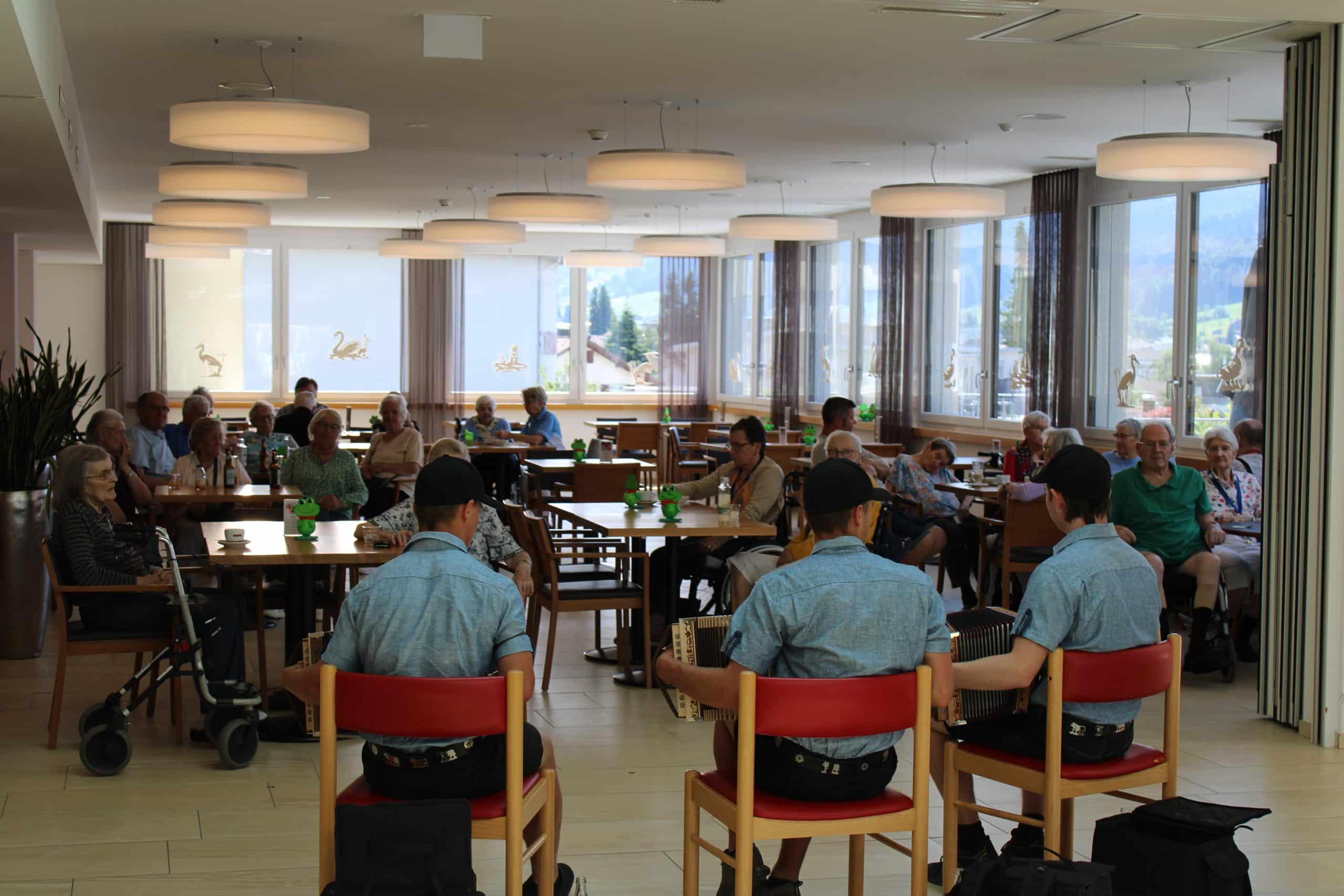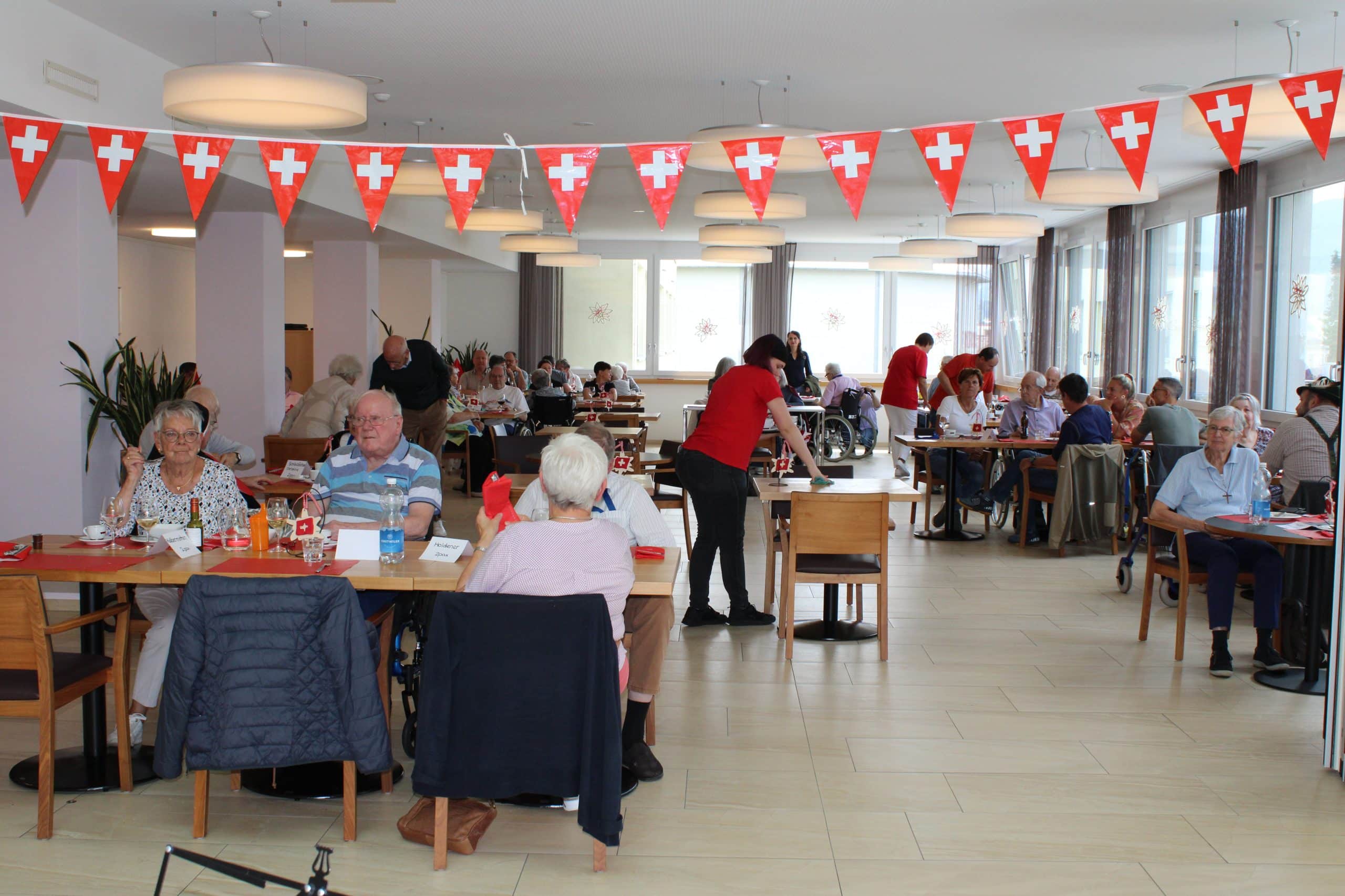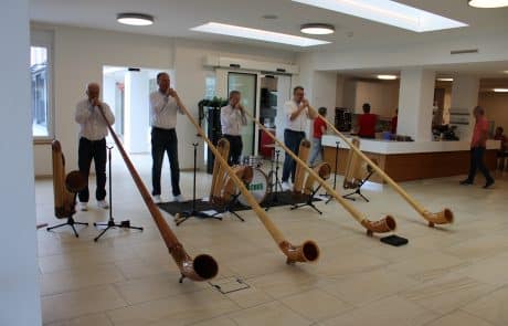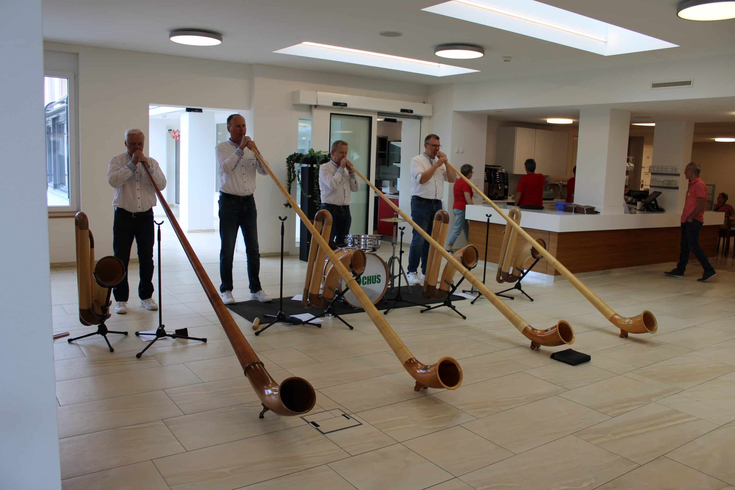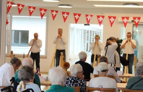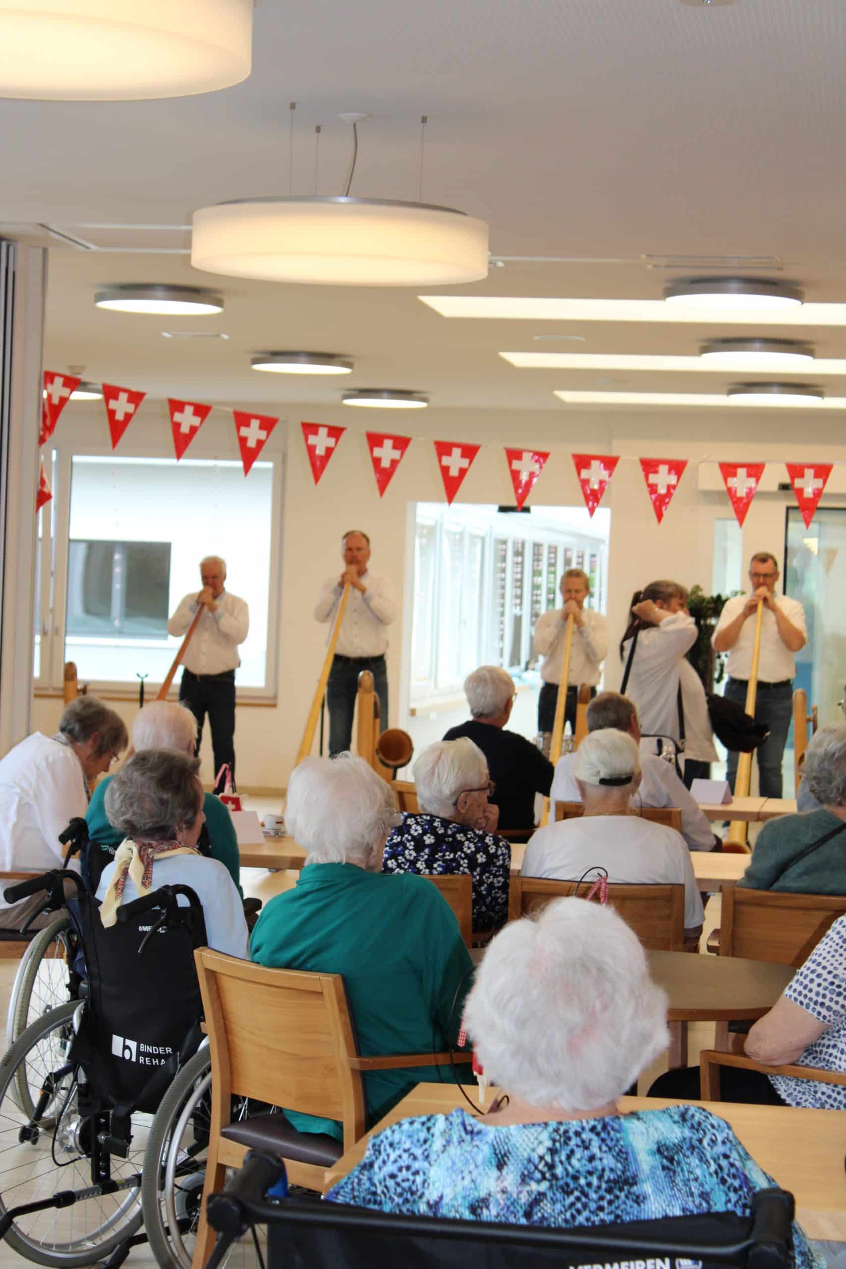 Schweizer Nationalfeiertag in der Gerbe. Bei uns verzauberte das Lochus-Alphornquartett unsere Bewohnerinnen und Bewohner mit heimischen Klängen, bevor sich dann die Bewohnerinnen und Bewohnern mit ihren Angehörigen am Grillbuffet verpflegen konnten. Am Nachmittag beglückten uns Ländler-Ladys mit stimmungsvoller Ländlermusik. Herzlichen Dank den Musikantinnen und Musikanten und allen Anwesenden für den tollen Tag.