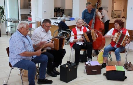 Und schon der nächste Volksmusikgenuss in der GERBE: Die «Örgelifreunde von Brunnen» sorgten mit ihren volkstümlichen Melodien für ein weiteres musikalisches Vergnügen. Unsere Bewohnerinnen und Bewohner genossen auch diesen Auftritte sehr. Herzlichen Dank an die Formation für die schönen Momente und die spürbare Freude, die sie in die GERBE gebracht haben!
