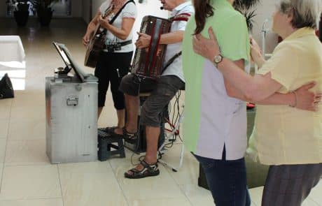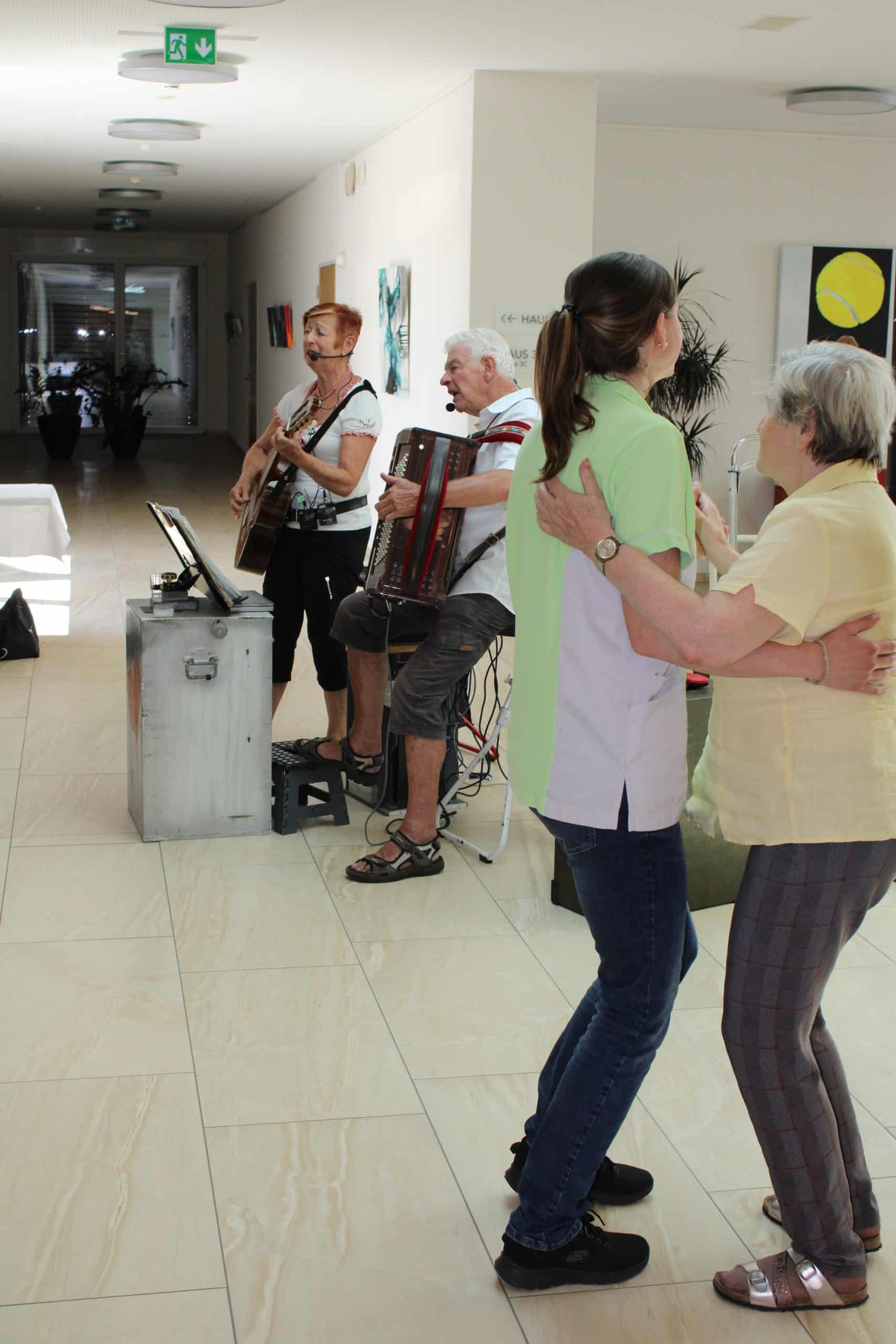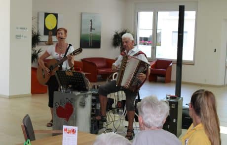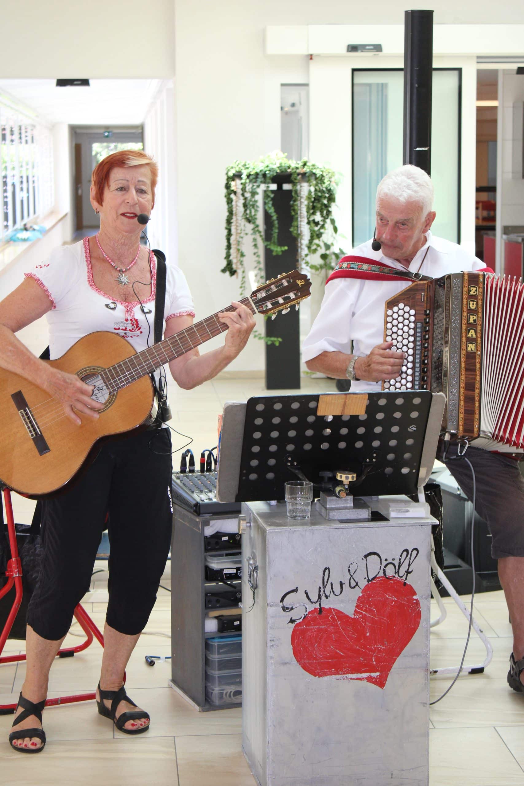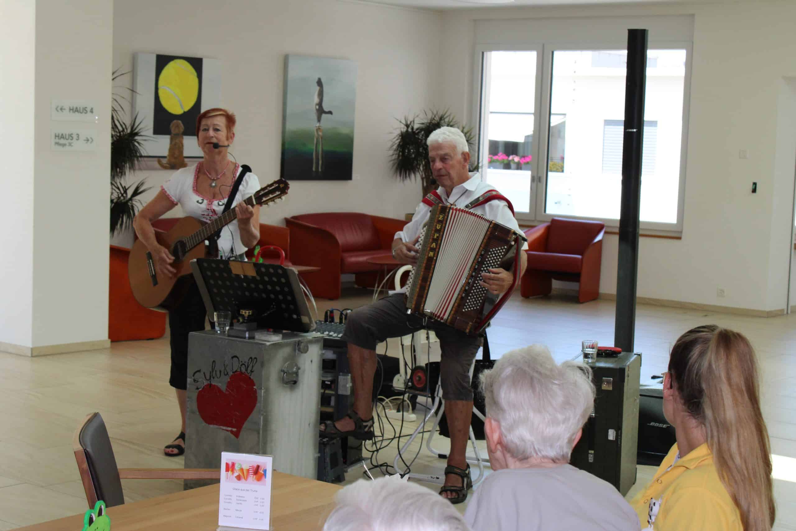 Vor Kurzem durften wir ein besonderes musikalisches Duo bei uns begrüssen: Sylv und Dölf waren zu Gast und sorgten mit ihrer schwungvollen Tanzmusik für viel Freude und Bewegung in der GERBE. Mit bekannten Melodien und viel Rhythmus im Gepäck unterhielten sie unsere Bewohnerinnen und Bewohner. Vielen Dank für diesen abwechslungsreichen Nachmittag.