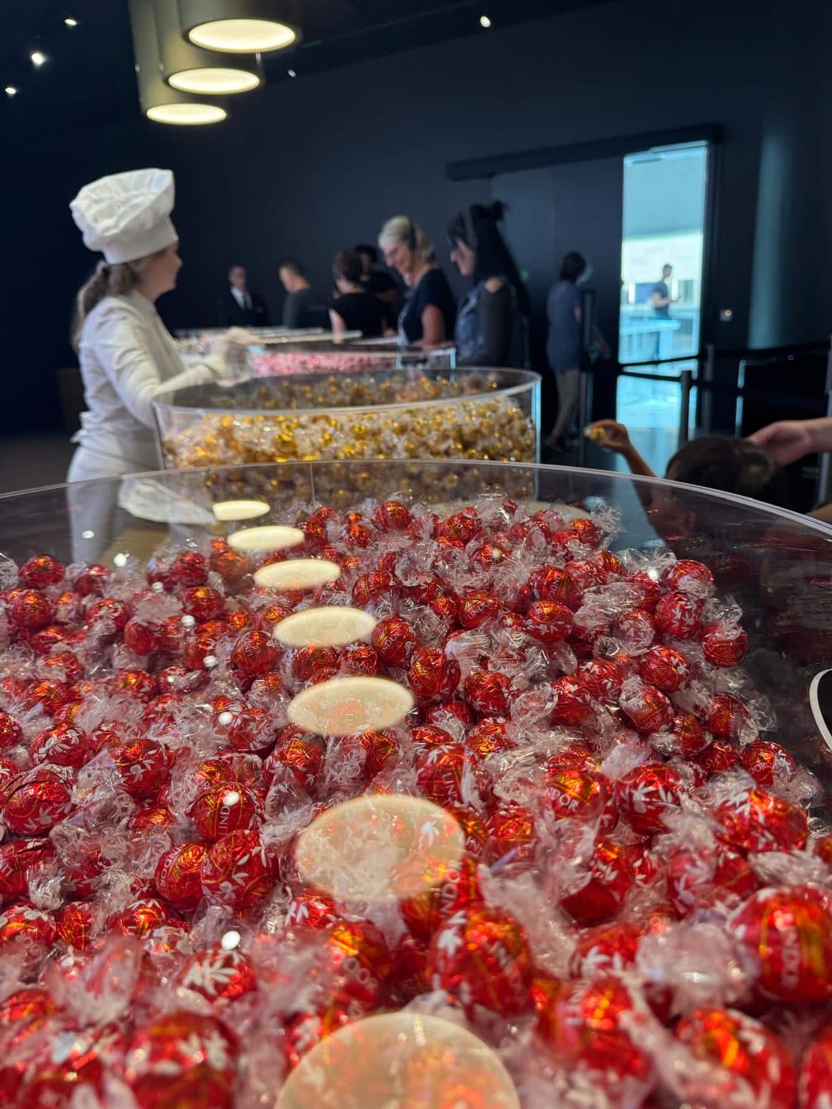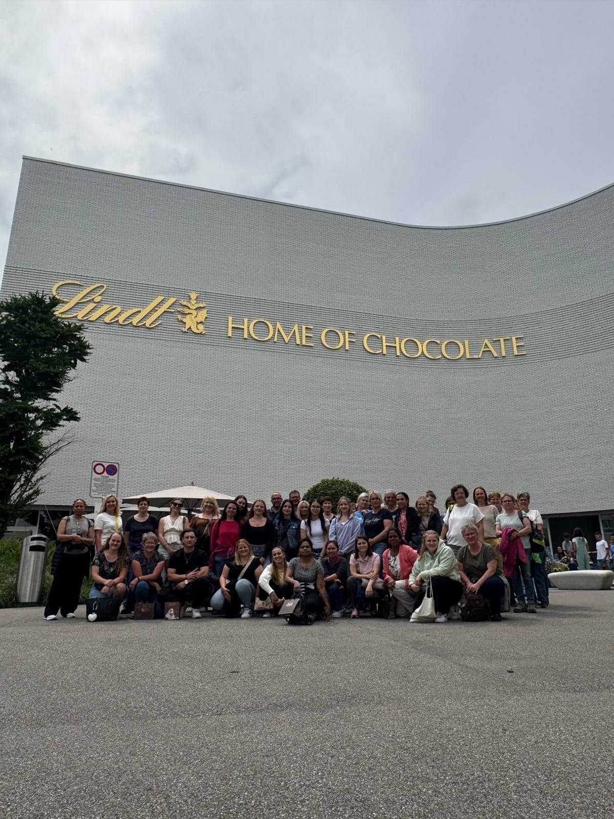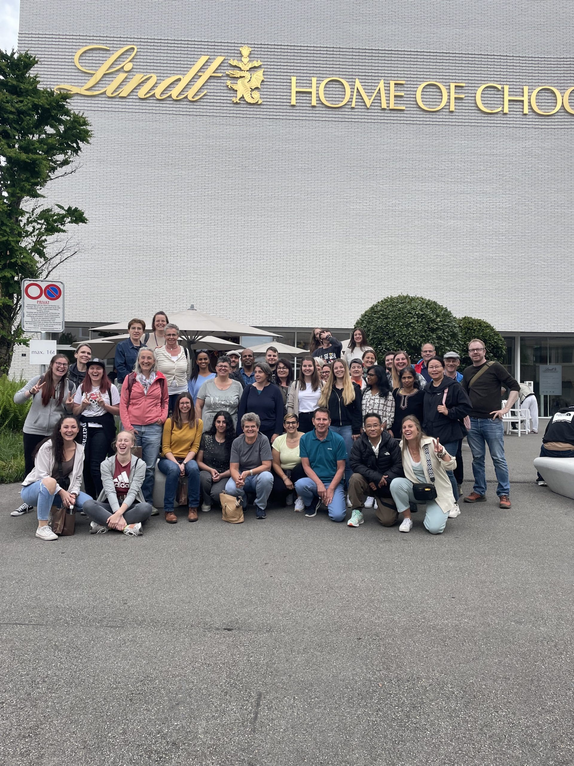 Gut gestärkt wurden wir um 11 Uhr von einem Car abgeholt, der uns auf direktem Weg nach Kilchberg brachte. Nach etwa 40 Minuten erreichten wir unser nächstes Ziel: das „Home of Chocolate“ von Lindt & Sprüngli. Dort erwartete uns eine spannende und sehr informative Führung durch die faszinierende Welt der Schokolade. Natürlich kam auch das Probieren nicht zu kurz – an verschiedenen Stationen durften wir immer wieder kleine, süsse Köstlichkeiten degustieren.
