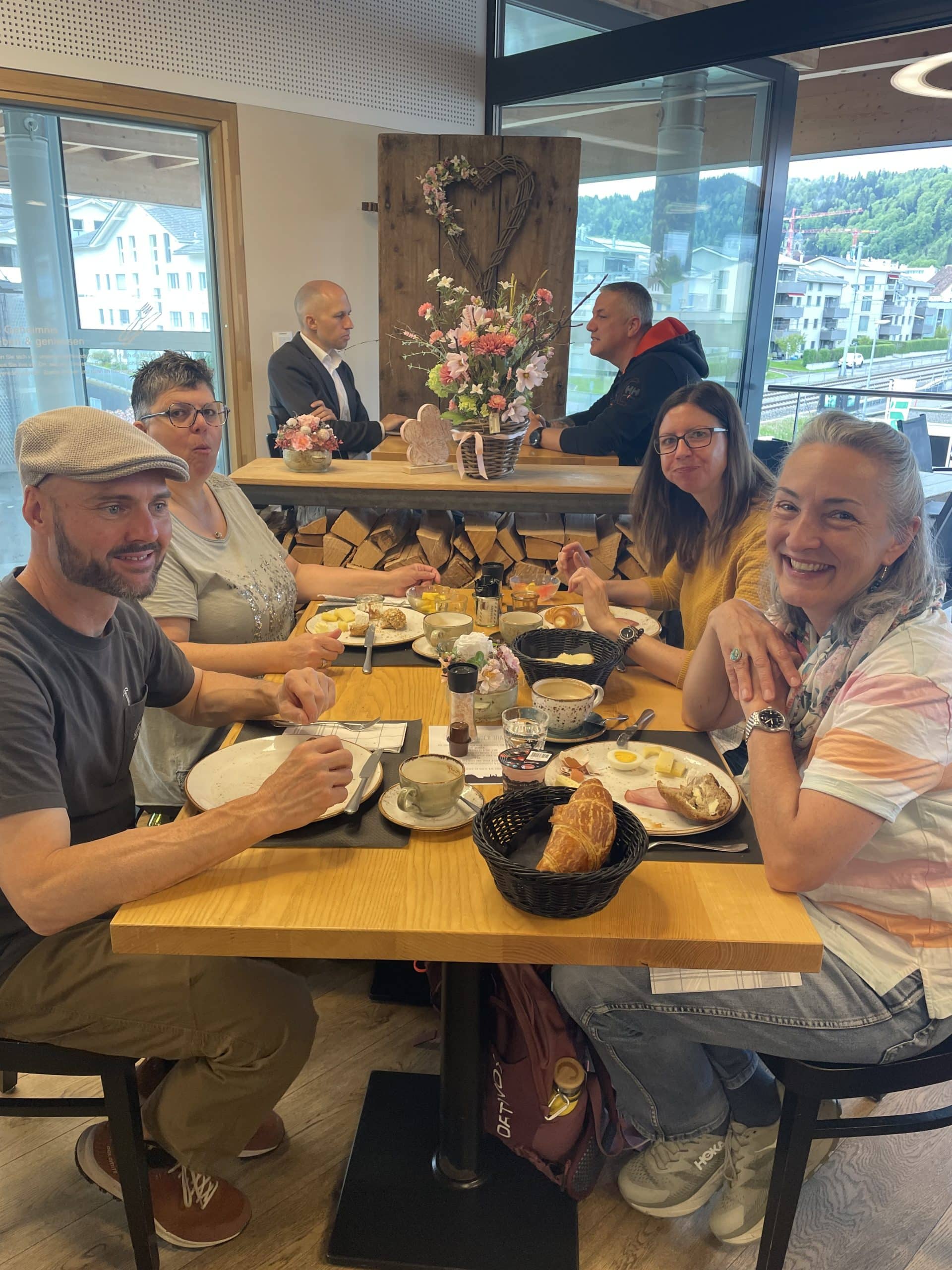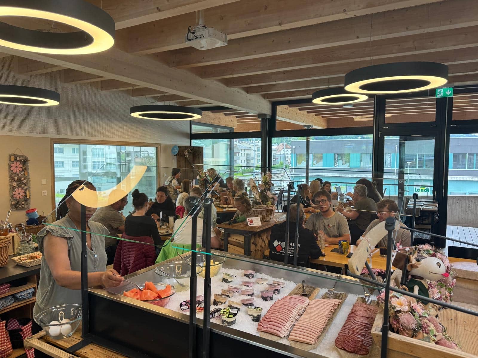 Am frühen Morgen um 8 Uhr trafen wir uns gespannt in der Gerbe, bereit für einen abwechslungsreichen Tag. Gemeinsam machten wir uns zu Fuss auf den Weg zur Milchmanufaktur, wo wir bei einem ausgiebigen Brunch in entspannter Atmosphäre den Tag gemütlich starteten.