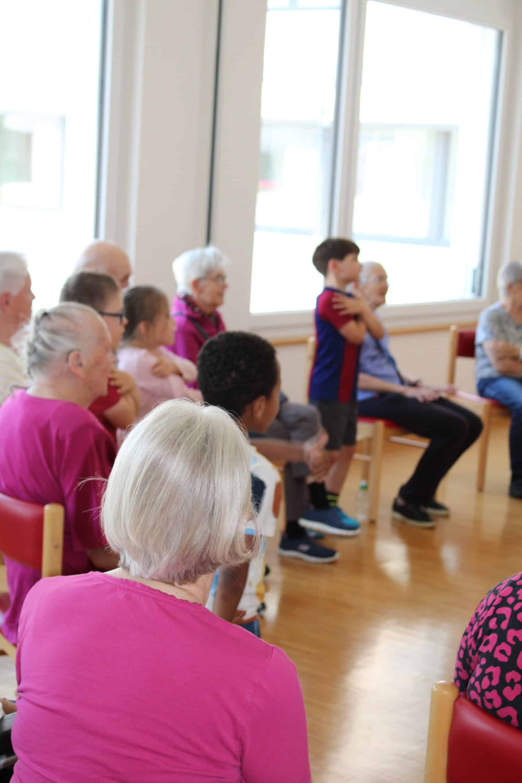 Begegnungen zwischen Generationen haben in unserem Wochenprogramm der Gerbe einen festen Platz. Petra Fässler mit ihren Kindergartenkindern war einmal mehr bei uns zu Besuch. Mit viel Freude wurde gemeinsam gespielt, gesungen und geturnt. Solche Begegnungen schaffen Nähe, bauen Berührungsängste ab und stärken das Verständnis zwischen den Generationen. Es war ein fröhlicher und bereichernder Nachmittag für alle Beteiligten. Wir danken den kleinen Gästen und ihrer Lehrerin herzlich für ihren Besuch!