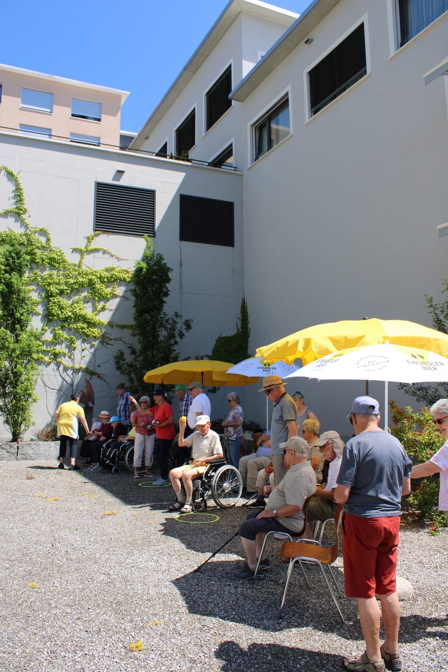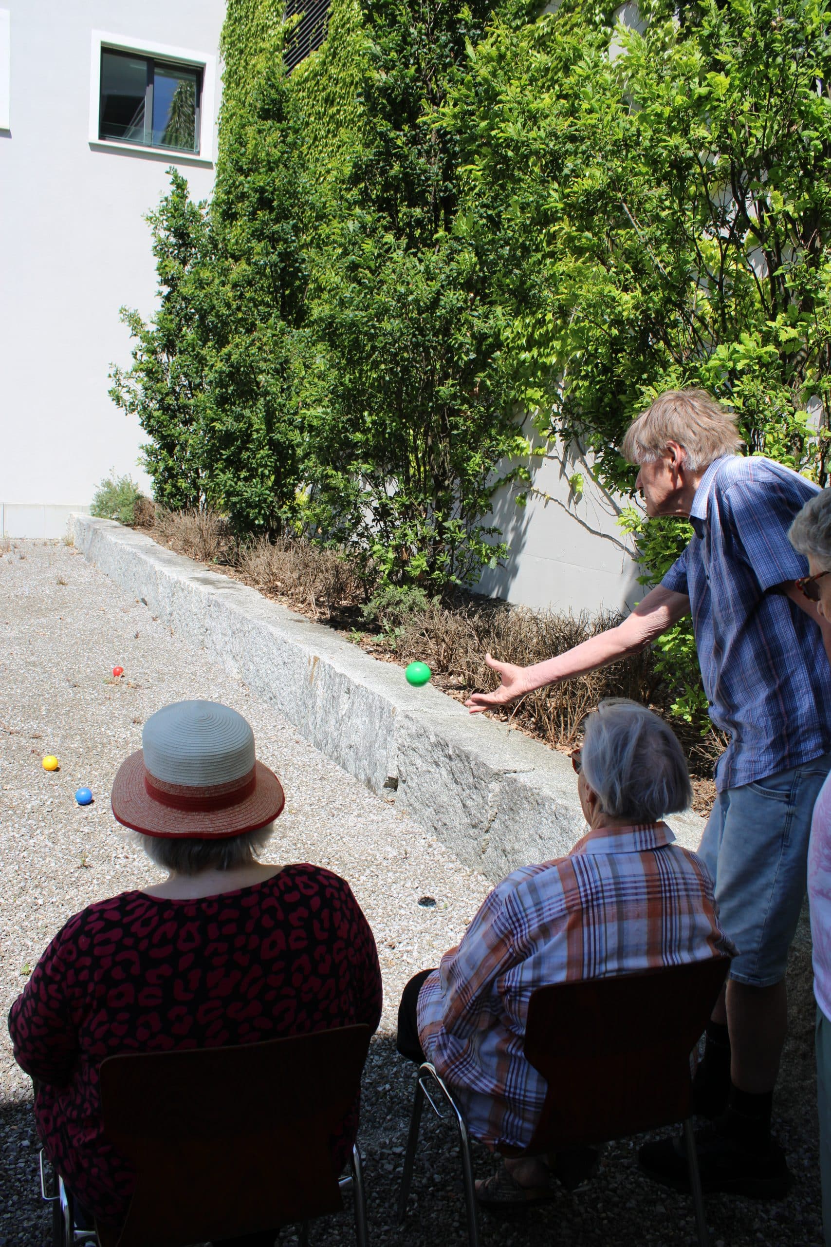 Bei schönstem Sommerwetter trafen sich unsere Bewohnerinnen und Bewohner im Gerbe-Park zu einem Pétanque-Nachmittag. Das Interesse war gross und alle hatten sichtlich Freude am Ballspiel. Vielen Dank an den freien Pétanque-Club Einsiedeln und allen, die diesen schönen Nachmittag möglich gemacht haben.