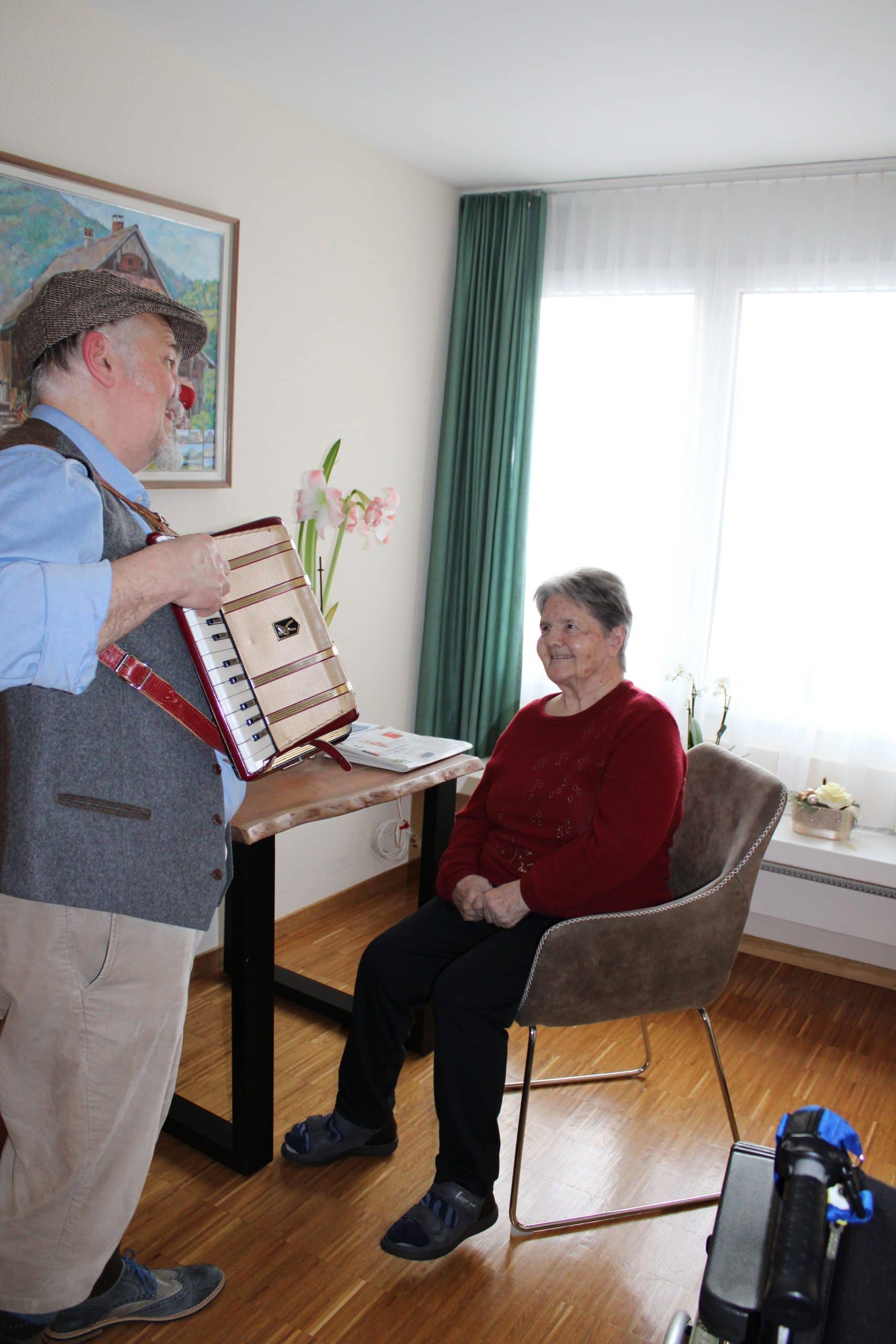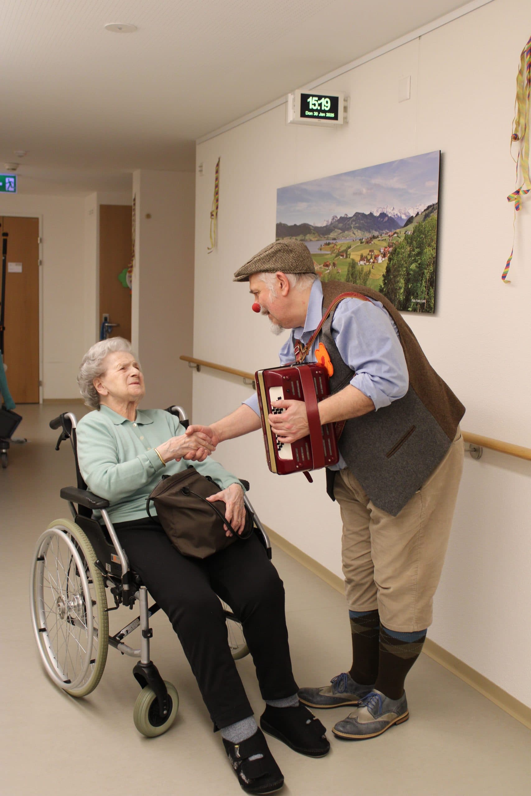 Und weiter geht das Fasnachtstreiben in der Gerbe! Die „Nachthämli-Ball-Musik“ besuchte uns und machte ihre Runde auf all unseren Abteilungen. Unsere Bewohnerinnen und Bewohner waren sehr erfreut über diese schöne Abwechslung. Vielen Dank den Musikanten für den gelungenen Auftritt!