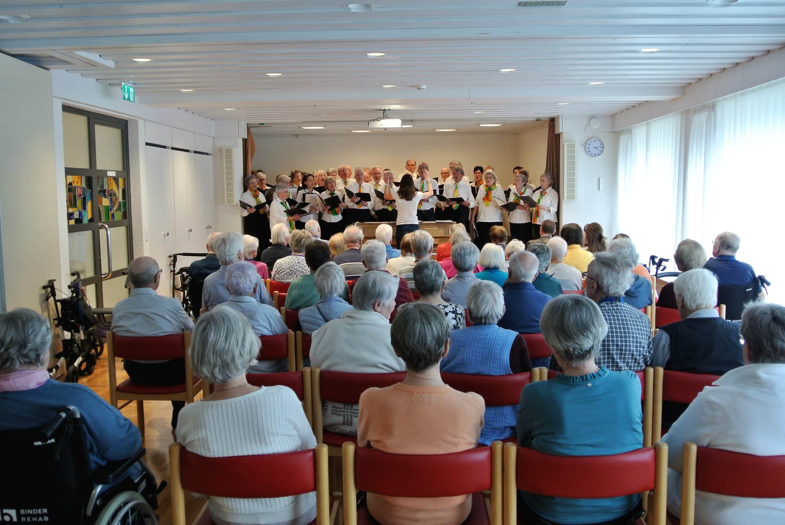 Der Andrang war gross, als der „Chor 60+“, unter der Leitung von Yvonne Theiler, sein Können bei uns in er Gerbe aufführte. Bei manch einem Lied konnten unsere Bewohnerinnen und Bewohner sogar munter mitsingen. Vielen Dank für den heiteren Auftritt und weiterhin viel Spass beim Singen!