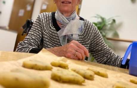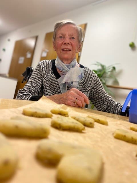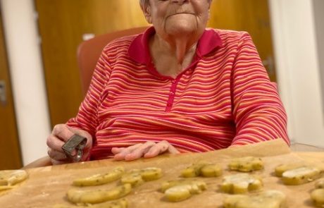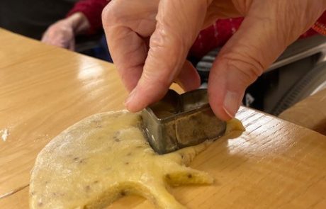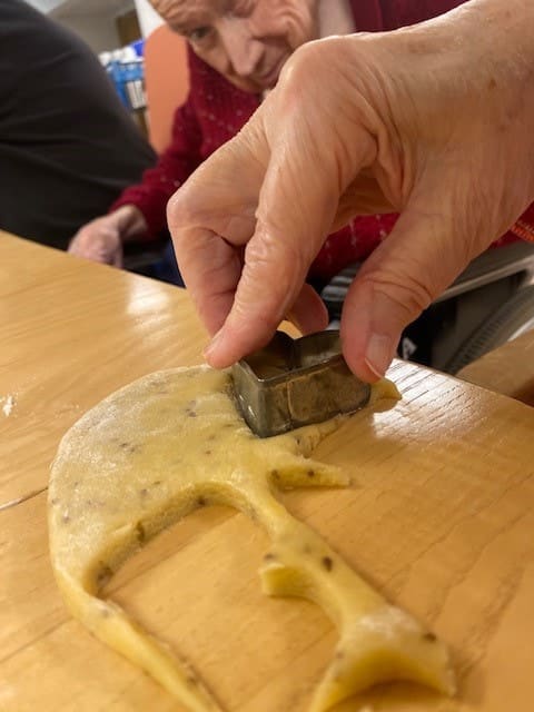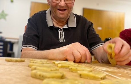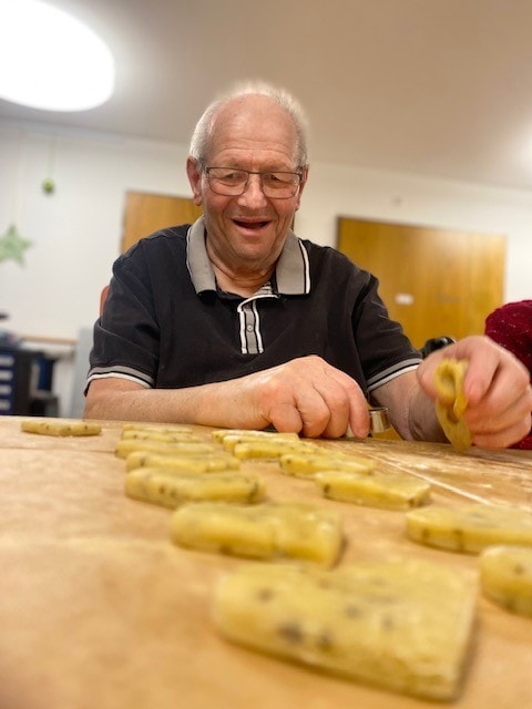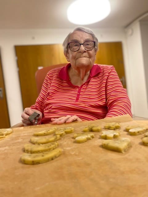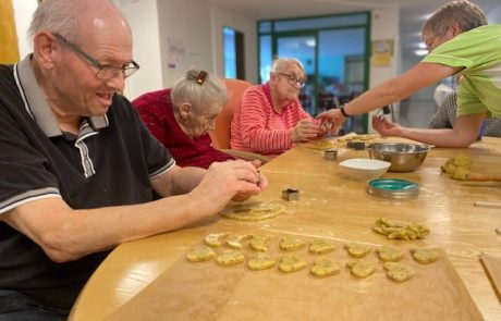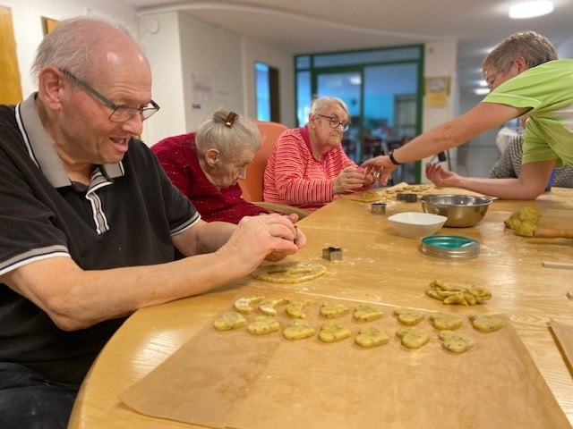 Die Bewohnerinnen und Bewohner stimmen sich auf Weihnachten ein und machen zusammen feine Weihnachts-Guetzli.