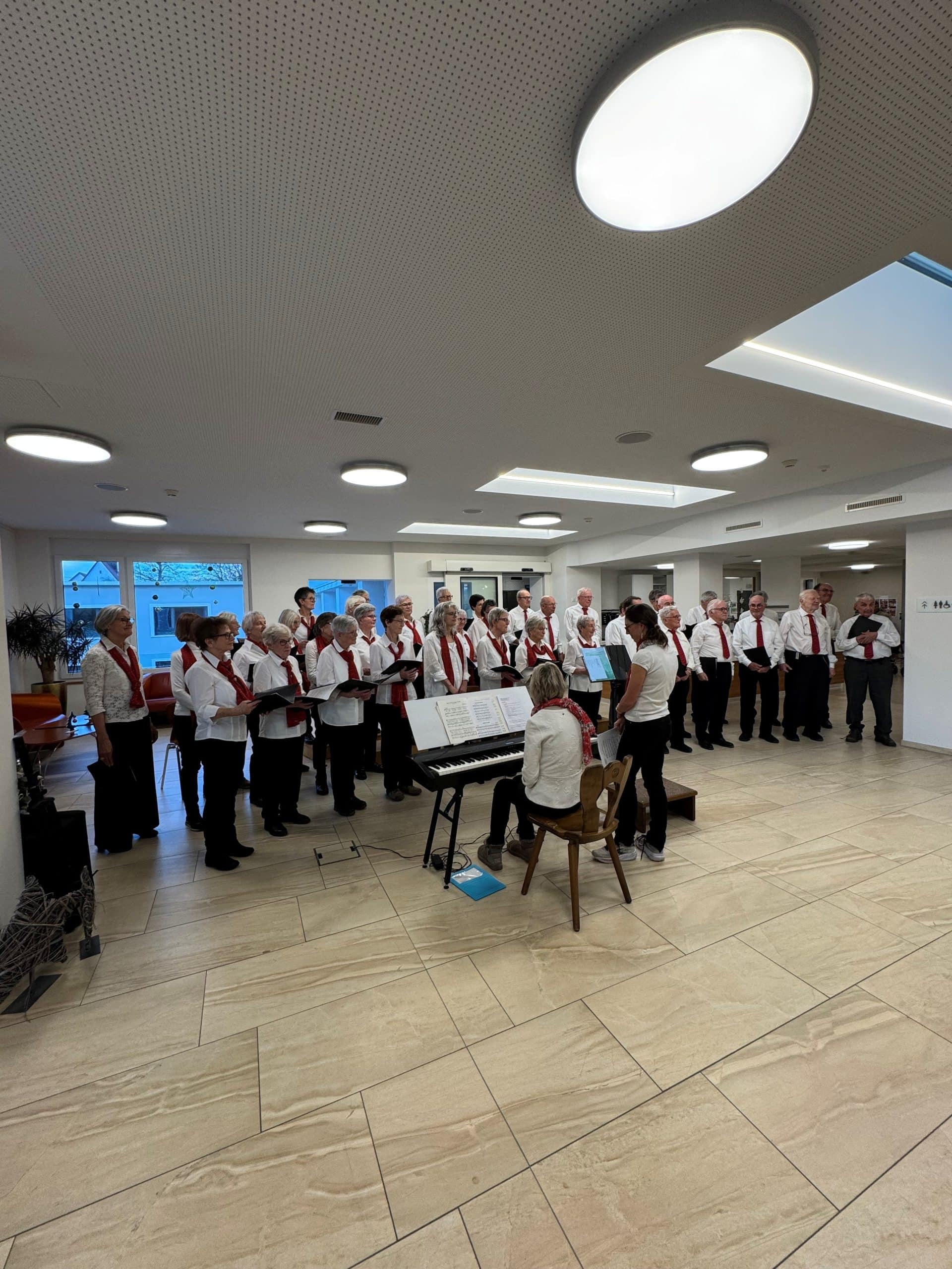 Um die Adventszeit für unsere Bewohnerinnen und Bewohner noch stimmungsvoller zu gestalten, haben wir kurz vor Weihnachten nochmals einen Chor zu uns in die GERBE eingeladen. Der Chor 60+ besuchte uns mit einem Adventskonzert. Es war ein besonders schöner Auftritt, der uns nochmals auf die bevorstehenden Festtage einstimmte. Herzlichen Dank an alle Sängerinnen und Sänger für dieses tolle Geschenk.
