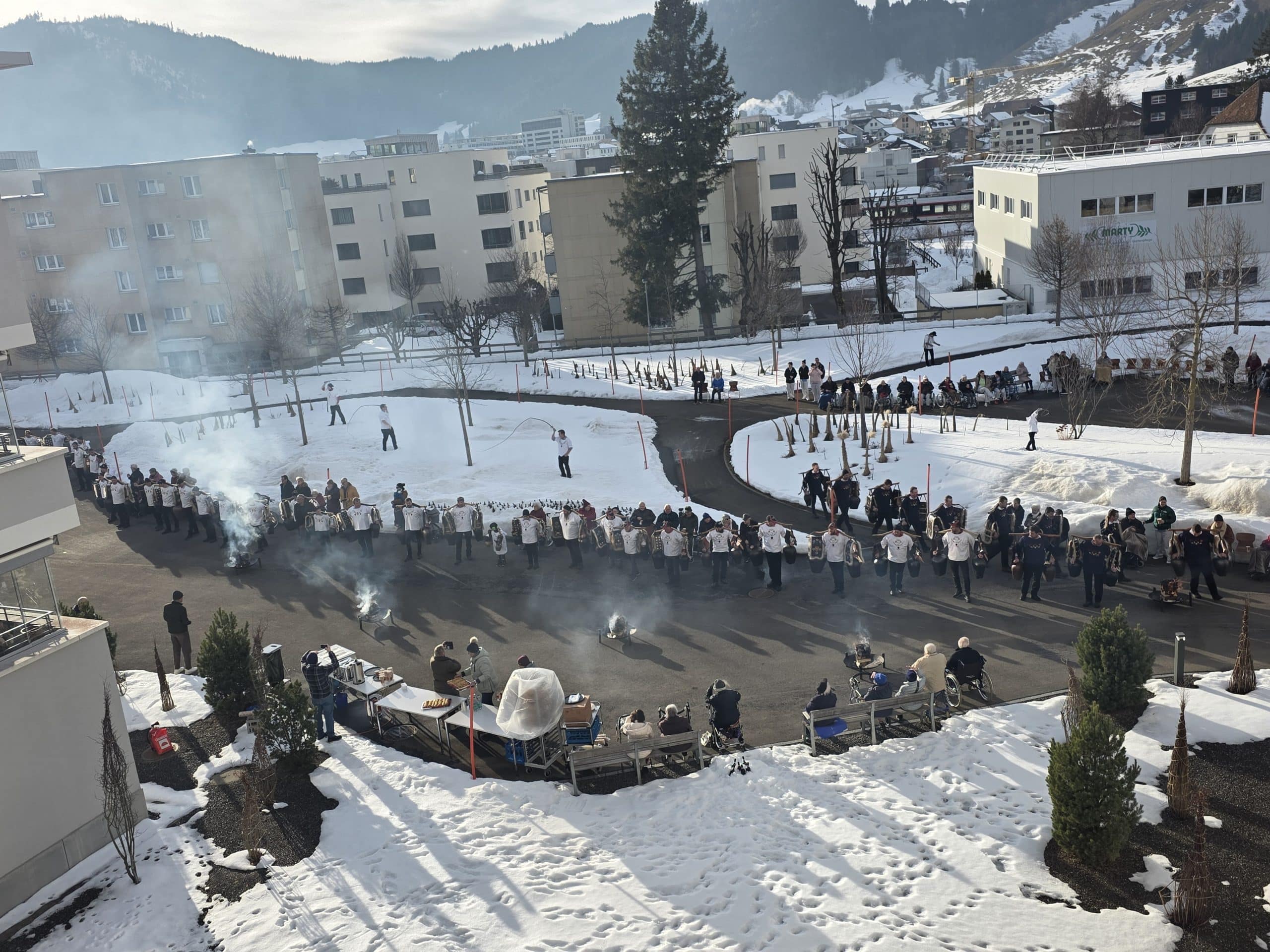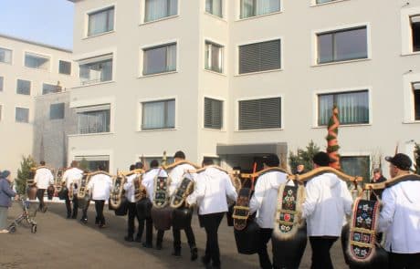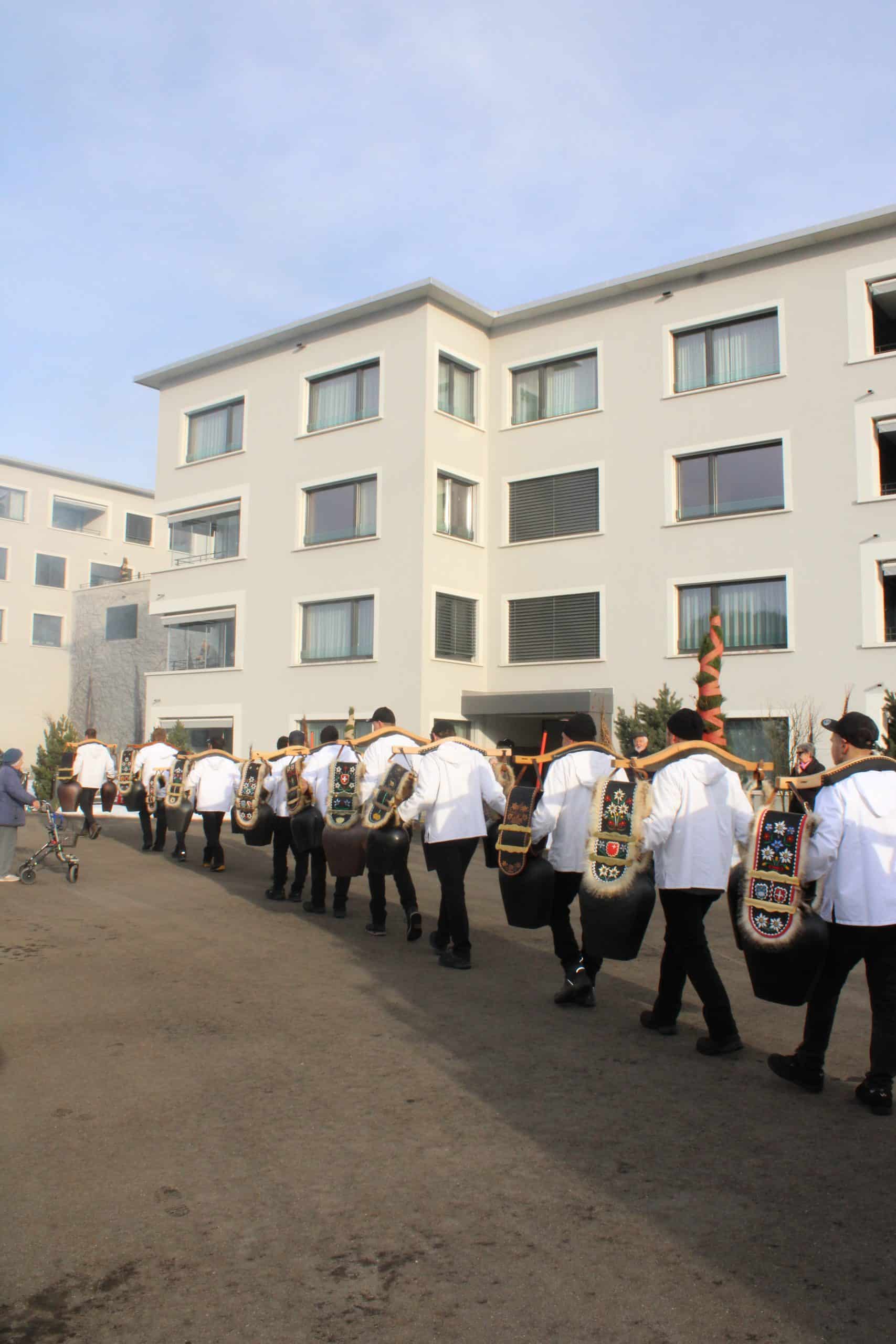 Am Wochenende durften wir einen ganz besonderen Anlass erleben: Eindrucksvolle Klänge der Trichglergruppen der Region ertönten in unserem Gerbe-Park. Unsere Bewohnerinnen, Bewohner und Gäste erlebten die besondere Atmosphäre, als die Trichler in einem Sternenmarsch zusammenkamen. Ein Anlass voller Klang, Kraft und Gemeinschaft. Für wohlige Wärme sorgten heisse Getränke, die bei den kalten Temperaturen besonders geschätzt wurden. Für zusätzliche Stimmung sorgte der Besuch der Guggenmusik Biberchrouser, die mit ihren mitreissenden Klängen die Fasnachtszeit in der Gerbe eingeläutet hat.